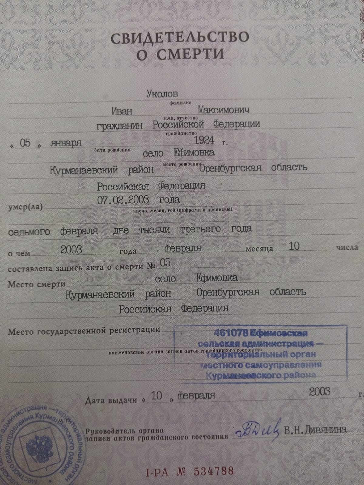 История Великой Победы — это не только маршалы и генералы, чьи имена навсегда вписаны в учебники. Это прежде всего простые люди — крестьяне, рабочие, учителя, юноши и девушки, которые встали на защиту Родины. Среди них — Иван Максимович Уколов, уроженец села Ефимовка Оренбургской области. Один из тех, кто сделал своё дело с честью и до конца. Родился 5 января 1924 года, в самой обыкновенной крестьянской семье. Раннее детство Ивана прошло в трудах — с малых лет он знал цену хлебу, работе, мужскому слову. До войны трудился трактористом в колхозе. Но как и миллионам его сверстников, ему было уготовано другое — страшное и великое испытание. Летом 1942-го Ивану исполнилось восемнадцать, и вскоре он был призван в армию. Четыре месяца учёбы — и вот уже выпускник Краснохолмского пехотного училища командует пулемётным расчётом на Калининском фронте. Суровая школа войны не пощадила юного командира — в одном из боёв вражеский снаряд разбил пулемёт, Иван получил ранение. Но фронт не отпускал. После госпиталя — снова передовая, на этот раз разведка. Каждое задание — как грань между жизнью и смертью. В одном из рейдов он был тяжело ранен вновь. Три месяца он провёл в сибирском госпитале. И в декабре 1943 года 19-летний инвалид вернулся домой. Казалось бы — всё, на этом путь закончился. Но сила характера Ивана Максимовича оказалась крепче любых ран. Он долгое время ходил на костылях, но вернулся к работе. Как это было всегда у сельских людей — без жалоб, без пафоса, просто делал своё дело. Был и учетчиком, и полеводом, и агрономом. В 1953 году его направили в Егорьевку, где он возглавил партийную организацию, а затем стал председателем колхоза. В 1959-м он вернулся в родную Ефимовку и возглавил местное сельпо. Он не был героем в парадном смысле этого слова. Не стремился к славе, не искал признания. Но именно из таких, как он, ковалась Победа. Именно такие, как он, восстанавливали страну из руин. Работал, любил, воспитывал детей — Валентину, Владимира, Любовь и Сергея. Его супруга Татьяна была его опорой, как он был опорой для всей своей семьи, села, страны. Иван Максимович Уколов прожил жизнь, о которой можно сказать: настоящая. Целеустремлённый, честный, справедливый — он остался примером для поколений. Пока мы помним таких людей — мы сильны. И мы обязаны помнить.