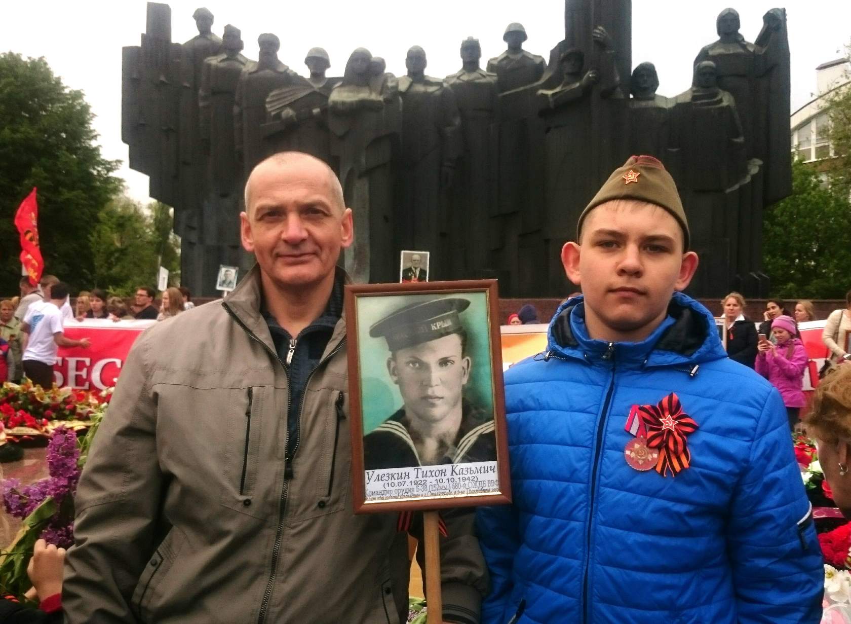10 октября 1942 года при очередном авианалёте краснофлотец Улезкин Тихон Казьмич погиб. Из-за ошибки в фамилии и ошибки в "похоронке" названия его родного села, он до 2011г. считался "без вести пропавшим". В 2011 году стало известно, что захоронен он в г.Сталинграде, на территории Сталинградского Тракторного Завода.
