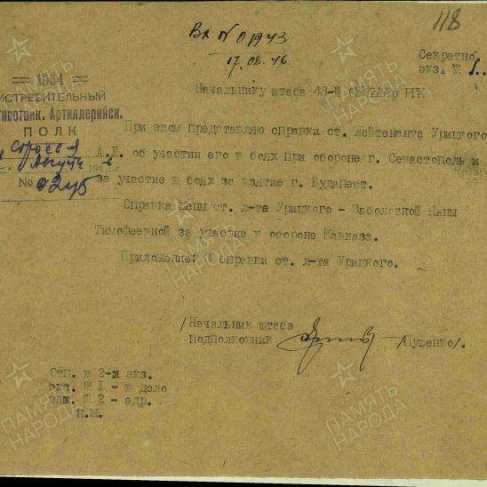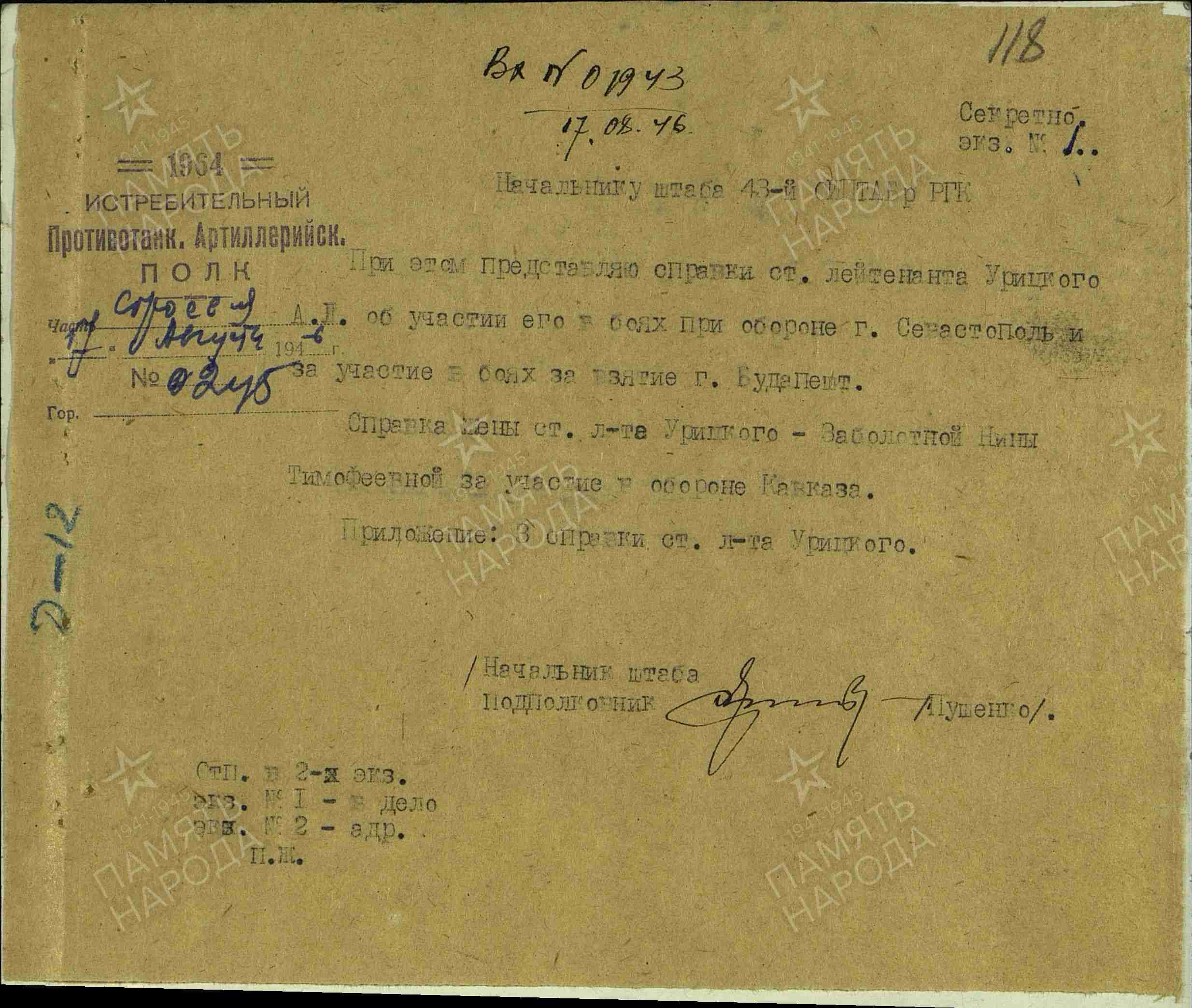 Урицкий Алексей Лукьянович 06.03.1921 ст. лейтенант 45 пабр 11 артд
