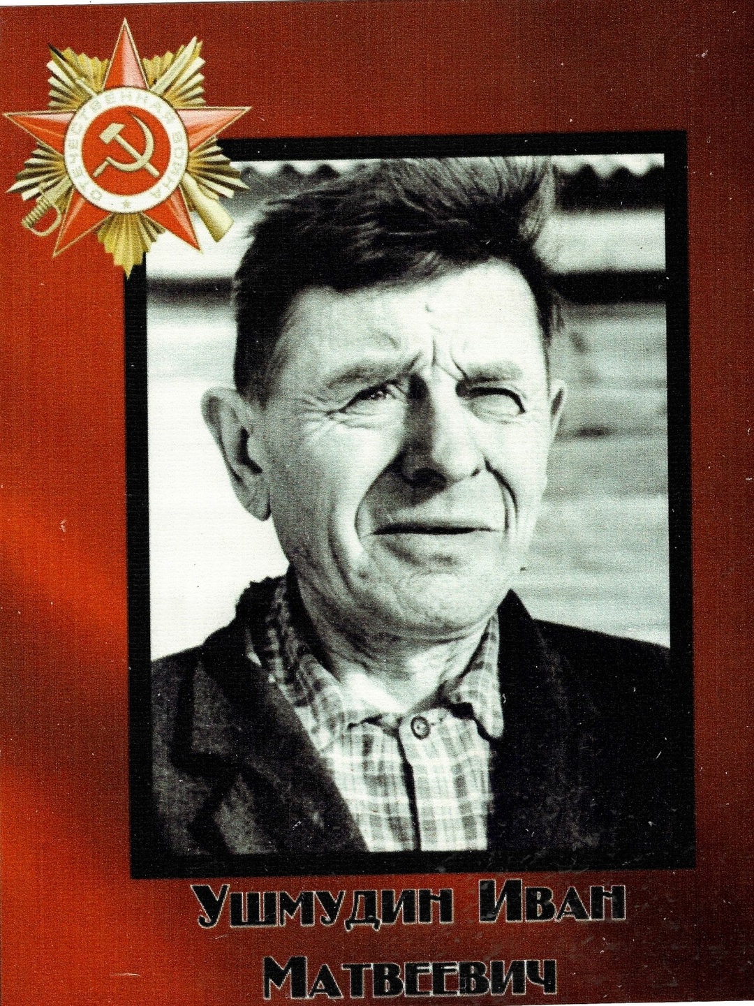 В 29 лет 7 августа 1941 года он был призван на военную службу Молотовским РВК Куйбышевской области.В период с 1941 по 1945 годы воевал в составе разных воинских частей от г. Куйбышева до Литвы, где и встретил окончание Великой отечественной войны и затем вернулся домой. За военные подвиги на фронте награжден Орденом Красной Звезды и медалью «За отвагу». О подвиге моего прадедушки, за который он получил медаль «За отвагу» известно, что во время боя под д. Пустынки 25 и 26 сентября 1943 года был поврежден кабель связи, прадедушка в одиночку в ночное время прополз линию обстрела и исправил повреждение кабеля связи, тем самым обеспечил связью командный пункт комдива с командиром 1189 стрелкового полка, что решило успех боя! Орден Красной Звезды прадедушка получил после отражения атаки противника в районе села Скрабуны Россонского района Витебской области 19.04.1944, когда он лично огнем своего ручного пулемета уничтожил 8 немецких солдат! За период отечественной войны мой прадедушка был отмечен как активный участник в боях. После возвращения с фронта мой прапрадедушка работал в своем родном селе председателем. Умер 20.09.1976
