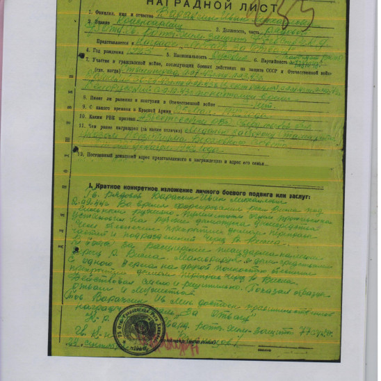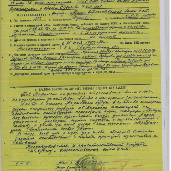Сталинградом, Брянском и Белорусском фронтах.Награжден:- орденом «Красной