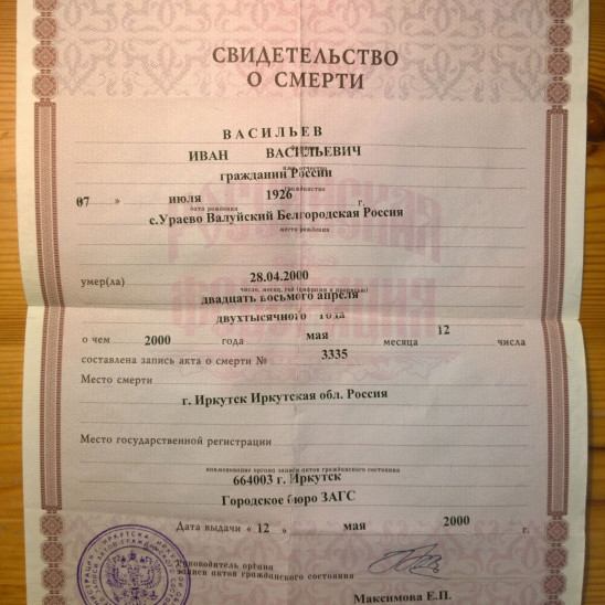 Мой дед - Васильев Иван Васильевич - человек, который для меня очень много значил, человек, который меня воспитал, Человек с большой буквы, и я горжусь тем, что он мой дед. Он родился 7 июля 1926 года в небольшом селе Курской (ныне Белгородской) области, в семи километрах от границы с Украиной. Как только позволил возраст, вступил в ряды Красной армии и отправился на фронт, чтобы внести свой посильный вклад в великую освободительную войну. Служил в пехотных войсках, в войну сражался под Курском в 1944-м, участвовал в освобождении Будапешта, Бухареста, Праги, Вены. (К сожалению, именно эти ордена украли, когда ограбили нашу квартиру в 90-х, от них остались только орденские книжки). После побывал в Китае - в 1945-м его части были переброшены на восток. Затем была служба в армии уже в Иркутске, в местной воинской части, вечерняя школа, учеба в ИГУ, семейная жизнь и работа. Мирная жизнь, которую он заслужил как никто. Он не любил говорить о войне, поэтому я, к сожалению, очень мало знаю. У меня о дедушке остались совершенно иные воспоминания. Я помню, как он научил играть меня в шахматы. Шахматы были большие, деревянные и очень красивые; он рассказывал, что получил их в качестве приза, победив в шахматном турнире в армии. Когда мне было три года, он смастерил мне деревянную лошадку на колесиках. Помню, как мы играли с дедушкой в бадминтон, как он купил мне двухколесный велосипед и ролики, как он катал меня на санках, как мы ходили на лыжах по замерзшей Ангаре - недалеко и недолго, потому что я была ещё маленькая, а ему уже не позволяло здоровье. А ещё я помню, как он рассказывал мне сказки на ночь и пел песни. Чаще всего - "Веселый ветер". Это была его любимая песня. Он умел абсолютно всё. На даче у нас был дом, маленький одноэтажный домик с печкой, который он построил сам. В гараже он выкопал погреб для хранения продуктов. Пока он был жив, у нас всегда всё исправно работало, до самой последней розеточки. Я сейчас смотрю сканы старых фото, и вижу, каким он был красивым в молодости. Может, в альтернативной реальности он стал бы звездой советского кино. А в этой реальности для него существовала только одна женщина - его жена, моя бабушка, и была только одна дочь - моя мама. День Победы для деда всегда был святым праздником, на который он, человек непьющий абсолютно, всегда пил - за Победу, за память о своих старших братьях, ушедших на фронт в 1941-м и пропавших без вести, за то, чтобы мир никогда больше не потрясла столь страшная война.