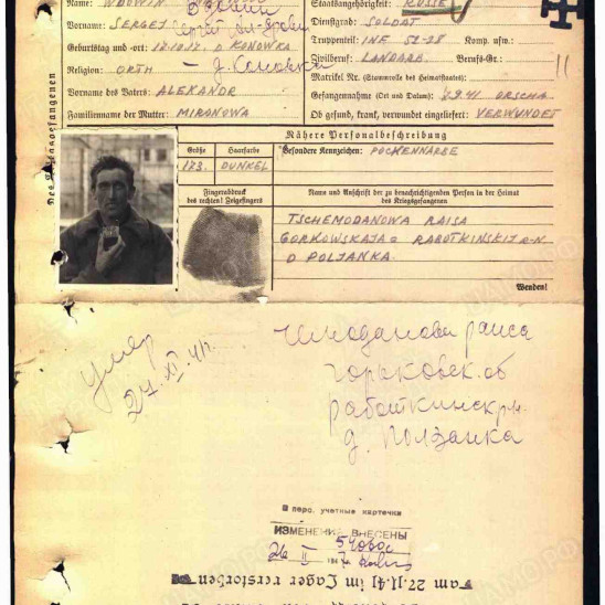 Вдовин Сергей Александрович-красноармеец РККА попал в плен 7 сентября 1941 года под г. Оршей и направлен в Шталаг-321 под № 14783 и погиб там 27.11.41г и похоронен в Оербке. Этот фронтовик мой односельчанин.