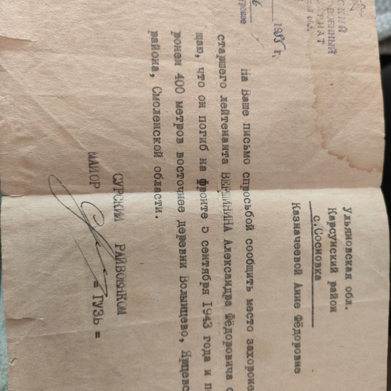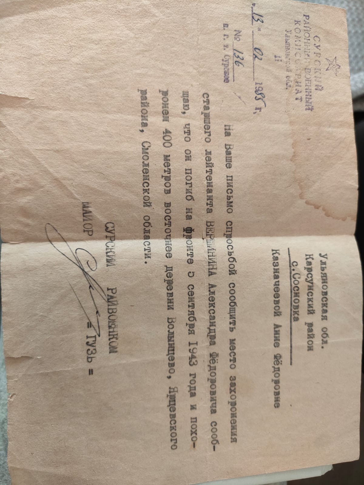 Родился 5 апреля 1923 года в деревне Никитино Астрадамовского р-на Куйбышевской области. Окончив Астрадамовскую среднюю школу, добровольцем ушёл на фронт. Военным комиссариатом был направлен на учёбу в военное училище, по окончанию которого был приписан в стрелковый полк командиром миномётного взвода и направлен на фронт. Командовал своим подразделением с августа 1942 г. Был дважды ранен. После излечения возвращался в свой полк. В июле 1943 г. был награждён орденом Красной Звезды. Убит в бою 5 сентября 1943 года и похоронен 400 метров восточнее деревни Волынцево, Ярцевского р-на, Смоленской области. Должность - командир взвода 681 стрелкового полка 133 стрелковой дивизии. Награждён орденом Красной Звезды дважды.