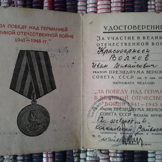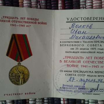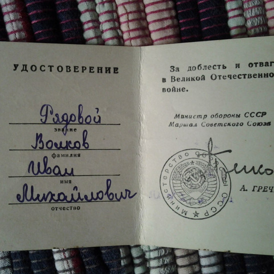 Боевой путь ветерана Дед умер, когда я была слишком мала, что бы поговорить "по душам" о войне. Знаю очень мало, но одно я знаю твёрдо, что мой дед был Герой! До 1943 го года проживал с женой, пятью детьми и тремя племянниками на, тогда ещё латышской территории, которую немцы оккупировали практически без боёв. Помогал сестре жены прятать двух латышских красноармейцев. После освобождения Красной армией Латвии, он ушёл на фронт в ряды артиллеристов простым рядовым. В марте 1945 года был тяжело ранен и встретил Победу на госпитальной койке. Человек он был незаурядный. После войны изобретал всевозможные механизмы, облегчающие труд крестьян. Бескорыстно помогал своим односельчанам.