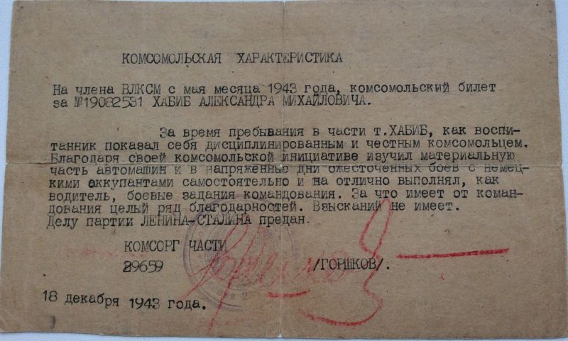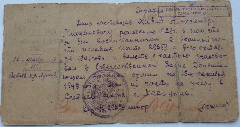 Хабиб Александр попал в армию в возрасте 12 лет осенью 1941 года, когда части Красной армии отступали с боями от города Мариуполь.