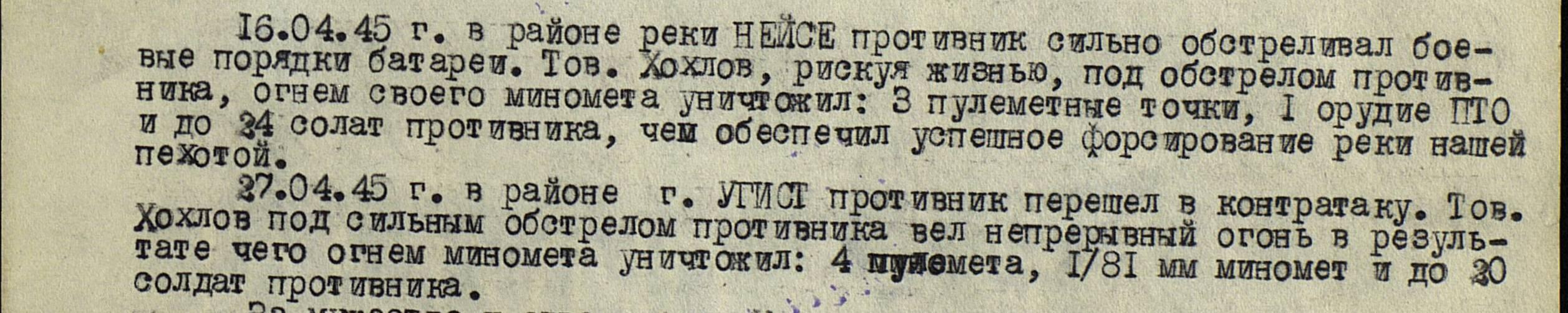 Боевой путь ветерана Мой дед Хохлов Петр Федорович родился в Каргатском районе,поселке Осиновка,после войны остался жить и работать в Чулыме,участвовал в освобождение Праги,Берлина,Звание: гвардии старший сержант в РККА с 06.1941 года Место призыва: Чулымский РВК, Новосибирская обл., Чулымский р-н Место службы: Воевал 171 гв. минометный полк, 7 минометная бригада, 3 артиллерийская дивизия прорыва  РГК.