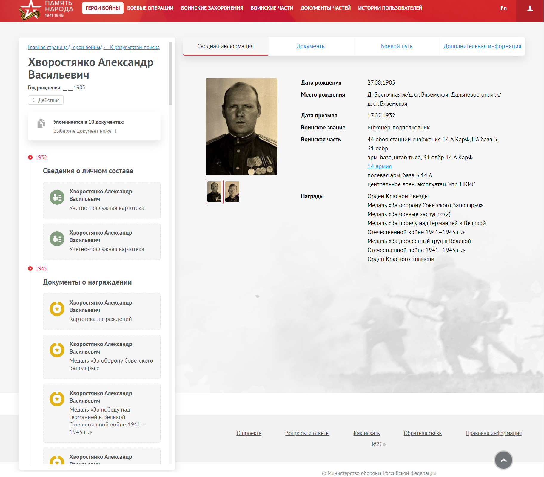 В звании подполковника прошел от Мурманска до Берлина.