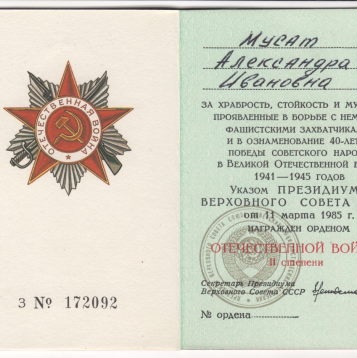 орденом «Отечественной войны II степени» и медалями.Вот такая и грустная и счастливая история семьи... Война затронула каждую семью. Нельзя