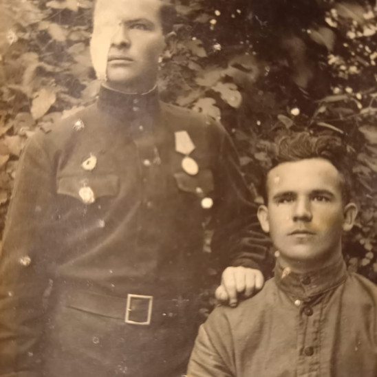 Мой дед уроженец Омской области., Черлакского р-на, село Народное. Место призыва Черлакский РВК, Омская обл., Черлакский р-н Воинское звание сержант ; ст. сержант Воинская часть 844 стрелковый полк 267 стрелковой дивизии (I) 34 гвардейская стрелковая дивизия Награды Медаль «За отвагу» (2) Место выбытия Калмыцкая АССР, Черноземельский улус, д. Яшкуль- с 1942 г. числился пропавшим без вести. На самом деле получил тяжелое ранение головы, попал сначала в госпиталь в Крыму, а затем был эвакуирован с госпиталем в Узбекистан, где проходил длительное лечение, потерял глаз, пальцы рук, всю последующую жизнь жил обрабатывая рану на лице, ходил с кожаной повязкой. Прожил долгую и счастливую жизнь. Воспитал троих детей. Ушел из жизни 29.12.1981 г., упокоен в своем родном селе Народное черлакского района Омской области.