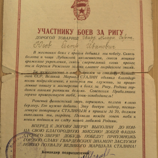 Мой отец никогда не рассказывал о войне нам в детстве. Говорил, что не надо нам знать об этом. Это страшно! Когда мы спрашивали, за что у него боевые награды, он отвечал, что воевал как все. Уже в наши дни, когда архивы стали доступны, я узнала, что он и телефонные соединения под огнем восстанавливал, чтобы артиллерия могла выполнить приказ. И фрица, подобравшегося к командному пункту, взял в плен.У У отца медаль За отвагу и две медали За боевые заслуги Он ушел на фронт в 1942 г добровольцем из Томска, где учился на 4 курсе Горного института. Демобилизовался в 1945, вернулся в институт, доучился и работал на горно добывающих урановых предприятиях. Много трудовых наград, в том числе Знак Шахтерская Слава 3-х степеней Последние годы жизни отец прожил в г. Димитровграде Ульяновской области
