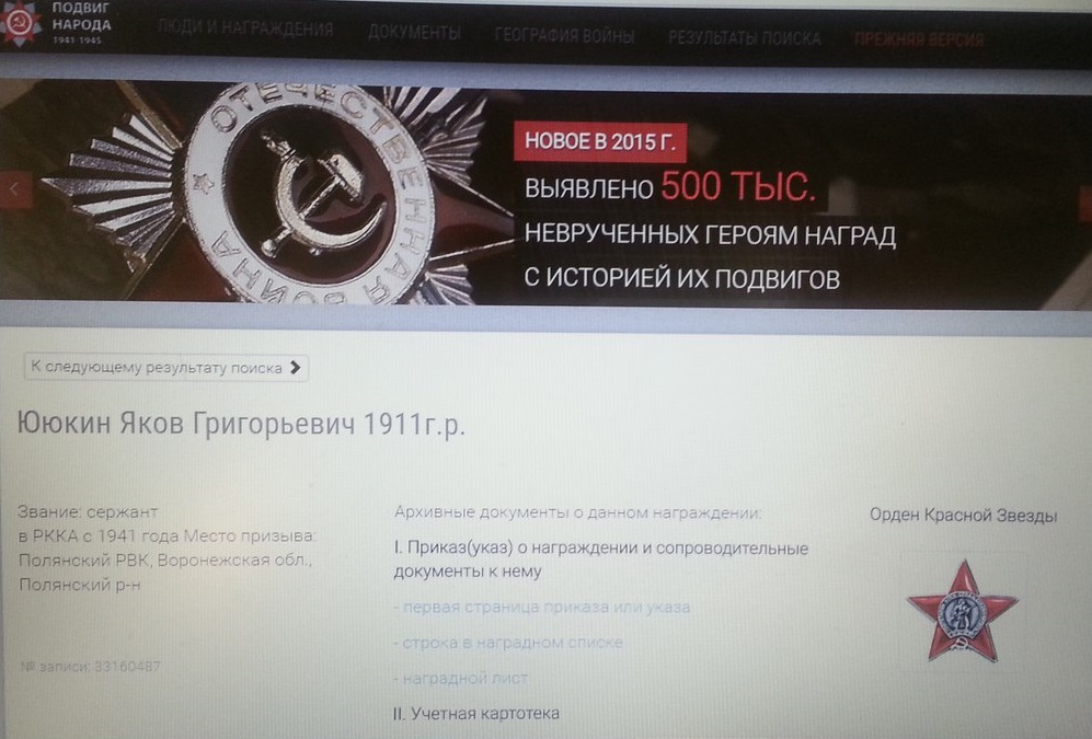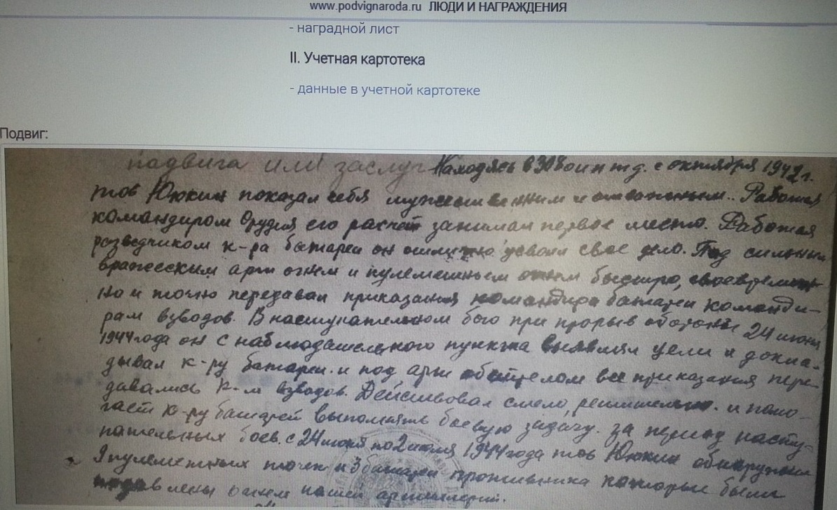 Ююкин Яков Григорьевич родился в Воронеже 23 мая 1911 года. В РККА с 1941 года. Место призыва: Полянский РВК Воронежской области Полянского района. Сержант 308 отдельного истребительного противотанкового дивизиона. Находясь в 308 отделении с октября 1942 года тов. Ююкин показал себя мужественным и отважным.Работая командиром орудия, его расчет занимал первое место. Работая разведчиком к-ра батареи он отлично усвоил свое дело. Под сильным вражеским артиллерийским огнем и пулеметным огнем быстро и своевременно и точно передавал приказания командира батареи командирам взводов. В наступательном бою при прорыве обороны 24 июня 1944 года он с наблюдательного пункта выявлял цели и докладывал командиру батальона и под артиллерийским обстрелом все приказания передавались командирам взводов. Действовала смело, решительно и помогал командиру батареи выполнять боевую задачу. За период наступательных боев с 24 июня 1944 года тов. Ююкин обнаружил 9 пулеметных точек и 3 батареи противника, которые были подавлены огнем нашей артиллерии.
