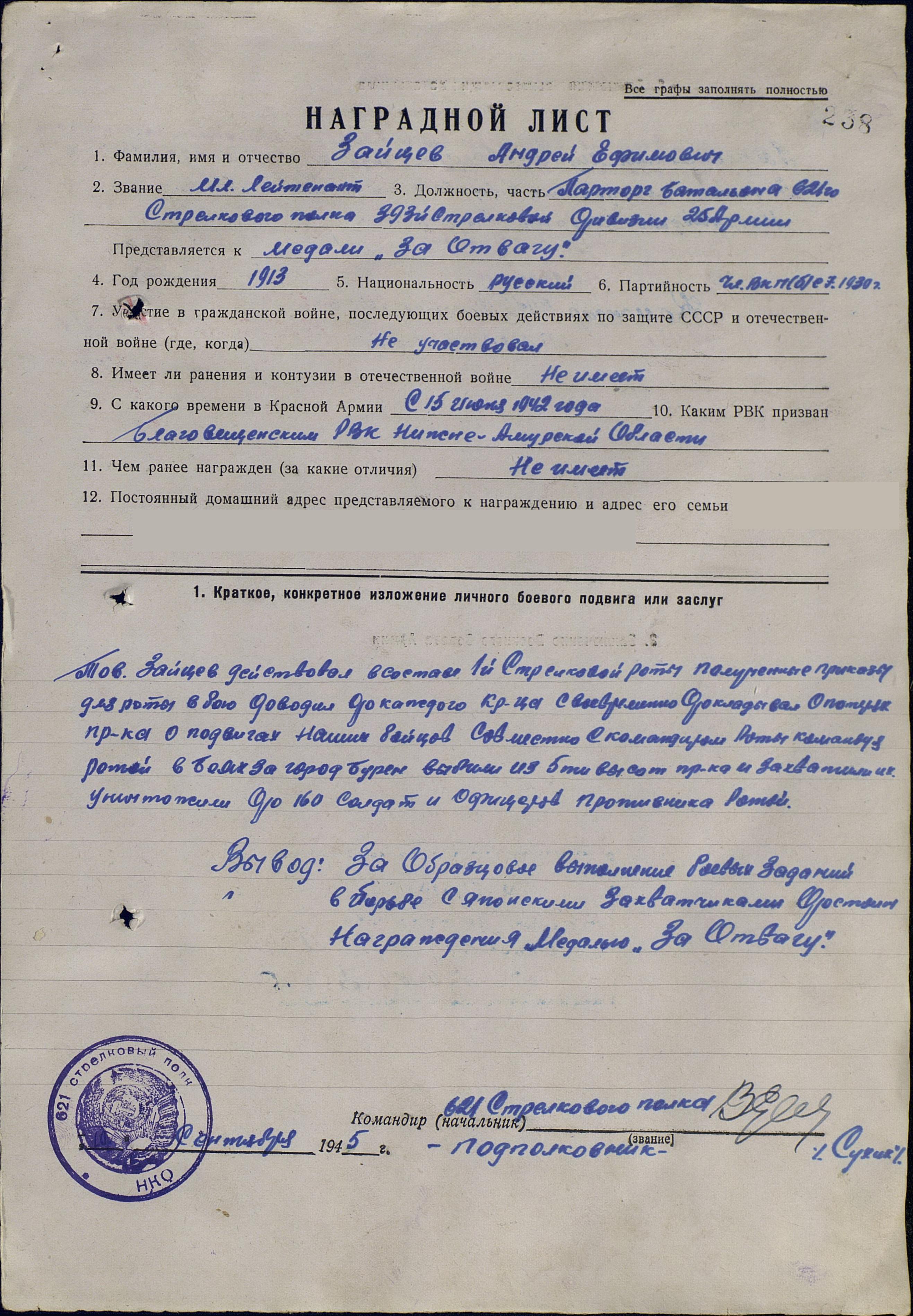 военных действий.После безоговорочной капитуляции Японии, Андрей Ефимович в