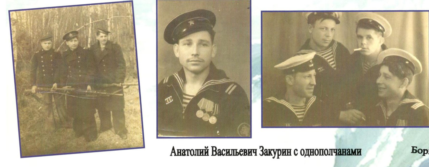 Анатолий Васильевич родился в 1924 г. в деревне Кармыши Тутаевского района Ярославской области. Окончил 7 классов. В 1940 г. поступил на работу в прядильно-подготовительный цех льнокомбината "Тульма". В октябре 1942 г. был мобилизован на фронт в г.Ленинград в железнодорожную батарею морской дальнобойной артиллерии. Охраняли наиболее важные объекты Ленинграда от налетов немецкой авиации. В 1943 г. получил осколочное ранение в голову. Участвовал в прорыве блокады Ленинграда. В январе 1944 г. обеспечивал высадку десантов на Карельском перешейке. Охранял укрепрайоны вЭстонии. Принимал участие во взятии Кенигсберга. С весны 1945 г. служил на военно-морской базе на Балтике. Демобилизовался в 1950 г.