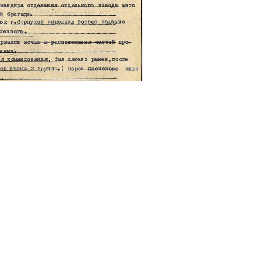 Боевой путь ветерана В июле 1941 года был призван на фронт. Был отправлен в военно пехотное училище в Переборах в г. Рыбинск. После учебы было присвоено звание старший сержант. В ноябре 1941 года из военного училища сформировали воинскую часть "особая 26 курсантская бригада". 5 ноября 1941 года вступили в бой под Серпуховом, в последствии бригада была переброшена под Можайск. 26 декабря 1941 года был ранен в правую ногу и контужен, направлен в госпиталь г. Горький. После лечения в госпитале, где находился 1,5 месяца был отправлен в Гороховецкие лагеря, где формировалась военная часть и был направлен на северо-западный фронт в лыжный батальон. Находился на фронте до 1943 года. Был тяжело ранен и комиссован.