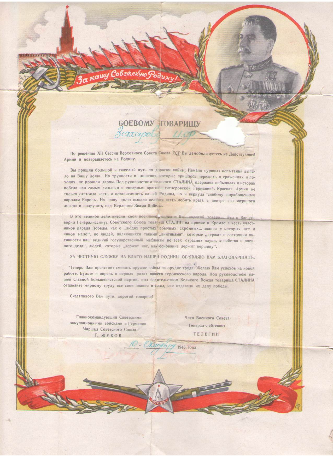 Мой дедушка - Захаров Иван Федотович, 1907 г.р., рядовой 686 гаубичного артиллерийского Брестского ордена Кутузова полка был призван в ряды Красной Армии и попал на фронт в ноябре 1941 года.