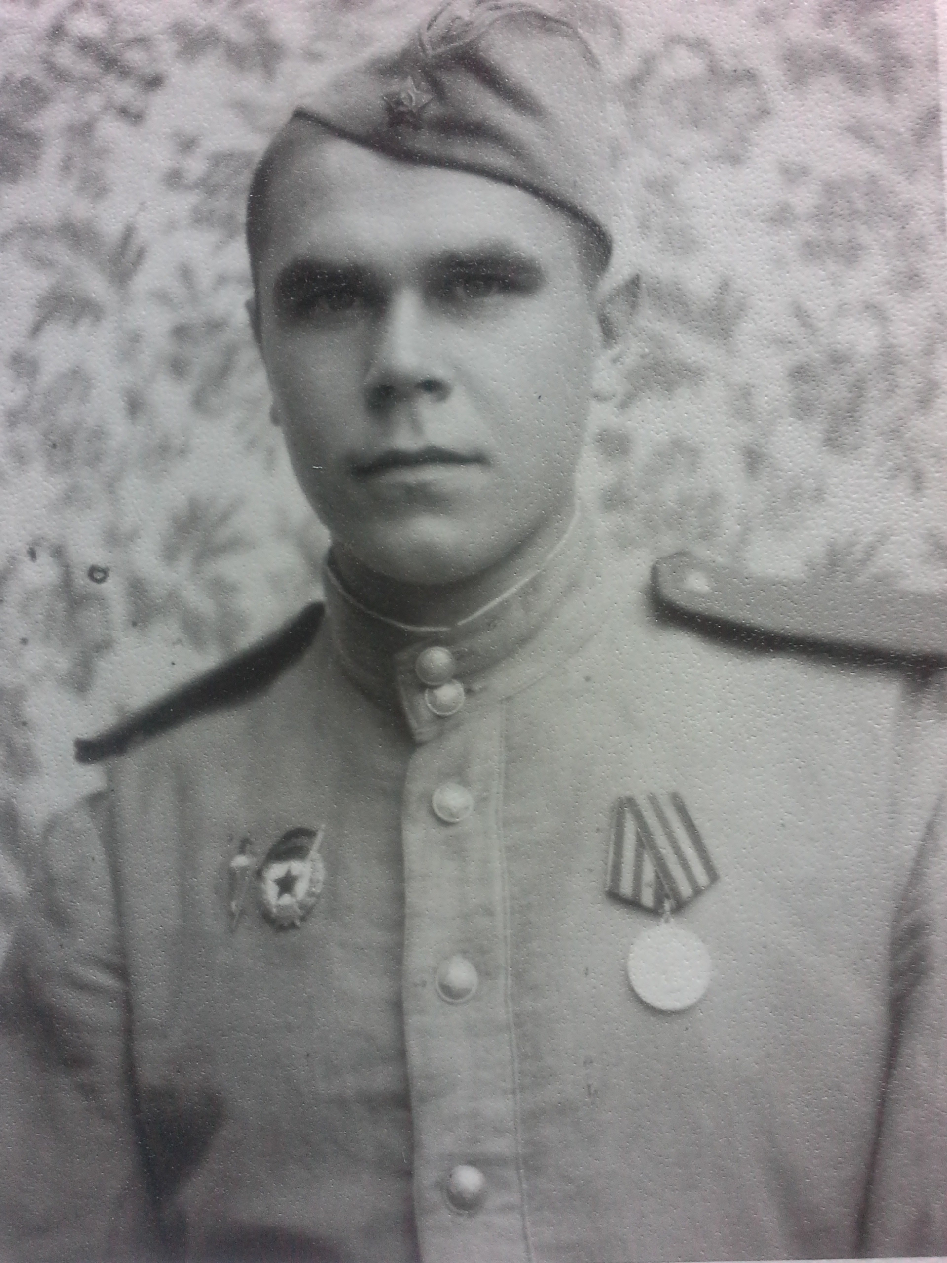 Призван 3.01.1943 г. Струнинским РВК Владимирской области. Сначала был зачислен во Владимирское пехотное училище, где прошел подготовку до февраля 1943 г. Затем воевал в составе 8 гвардейской воздушно-десантной бригады наводчиком ПТР до июня 1943 г. Затем в составе 346 гвардейского ордена Александра Невского стрелкового полка дошел до Венгрии, закончил войну в г. Пештинтэржебет (в написании того времени). Демобилизован в феврале 1948 г. 25 мая 1946 года награжден медалью "За победу над Германией в Великой Отечественной войне 1941-1945 гг.", знаком "25 лет Победы в Великой Отечественной войне", медалью "30 лет победы в Великой Отечественной войне 1941-1945 гг."