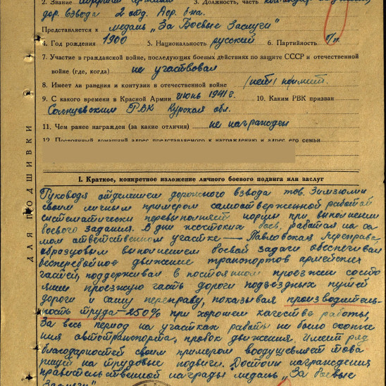 Участвовал в боях Великой Отечественной Войны с июня 1941 г., дошел до Берлина.