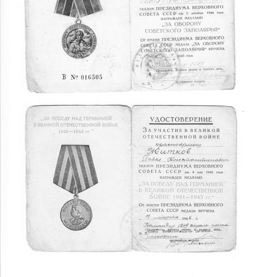 Правительственные награды: медаль «За оборону Советского Заполярья», медаль «За