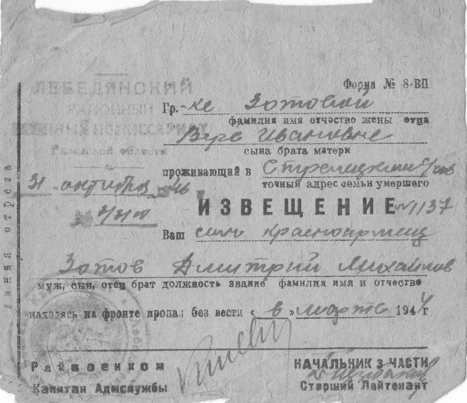 Место рождения: Стрелецкая слобода Лебедянского уезда