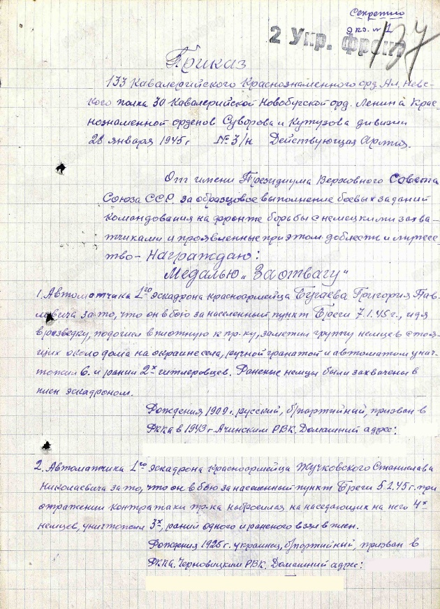 Призван в ряды Красной Армии весной 1944 года Черневецким РВК (Винницкая обл.) в возрасте 18 лет. Боевой путь начал в пехоте, командиром стрелкового отделения 1131-го стрелкового полка. 31 августа 1944 года в боях за румынское селение Круча проявил мужество, отбив контратаку врага, за что получил свою первую медаль «За отвагу». Осенью 1944 года был переведен в 133-й кавалерийский полк 4-го гвардейского кавалерийского корпуса генерала И.А. Плиева. Служил автоматчиком 1-го эскадрона. 5 января 1945 года в Венгрии (населенный пункт Ереги) при отражении атаки лично уничтожил троих солдат противника и взял одного в плен, заслужив вторую медаль «За отвагу». Весной 1945 года, вновь в должности командира отделения, участвовал в боях за Чехословакию. 3 апреля 1945 года при штурме города Трнава по собственной инициативе поднял отделение в атаку, лично уничтожив 9 гитлеровцев, за что был награжден третьей медалью «За отвагу». После Победы продолжал нести срочную службу. Вплоть до 1950 года участвовал в ликвидации вооруженного националистического подполья на Западной Украине. Демобилизован в 1950 году. К 40-летию Победы в 1985 году награжден Орденом Отечественной войны II степени.