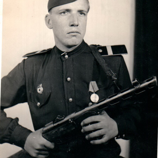 В 1944 году убежал на фронт, попал в 11-й Гвардейский танковый корпус 350 ЛАП, воевал до конца войны, дошёл до Берлина. Был ранен 30.04.1945г в Берлине, проходил лечение в госпитале г.Лодзь, Польша. Других сведений не имею.Награждён за подвиг медалью "За отвагу", так как в бою убил много гитлеровцев, был ранен, но поля боя не покинул.