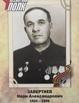 Заверткин Михаил Андреевич с. Дракино Торбеевского района Республика Мордовия 1898 - 1984 Заверткин Михаил Владимирович Московская обл., Горловский р-н, с. Ногиши 1914 - 1982 Заверткин Тимофей Архипович 1907 - 1965 Завертнев Иван Александрович Республика Казахстан, г. Кокчетав 1920 - 1998 Завертяев Алексей Степанович Тамбовский район 1931 Завертяев Василий Григорьевич 1908 - 1986 Завертяев Григорий Иванович город Урюпинск 1899 - 1958 Завертяев Михаил Иванович 1904 - 1992 Завертяев Михаил Иванович 1904 - 1992 Завертяев Михаил Константинович с. Михеи 1923 Заверуха Дмитрий Никифорович 1915 Заверуха Иван Александрович 1925 - 1986 Заверуха Михаил Никитович 1926 - 2013 Заверуха Михаил Павлович Заверуха Петр Романович 1907 Завершинский Василий Анатольевич 1926 Завершинский Георгий Завершинский Иван Васильевич 1917 - 1996 Завершинский Иван Петрович 1912 - 1992 Завершинский Иван Степанович