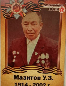 Мазитов Камиль Ахметзянович 1926 - 1987 Мазитов Мансур 1926 - 2009 Мазитов Мигран Иксанович село Ново-Белогорка Сорочинского уезда Оренбургской губернии 1919 - 2003 Мазитов Мидхат Ахметович Мазитов Мидхат Ахметович 1924 - 1997 Мазитов Миниахмет Габрашитович 1914 - 1980 Мазитов Миргаяз Мухаметгареевич п.Булгар-2 Альметьевского района ТАССР 1923 - 1995 Мазитов Мухамед Хананович Мазитов Нурулло Башкортостан 1918 - 1994 Мазитов Равиль Ибрагимович город Уфа 1914 Мазитов Сагит Мазитович 1909 - 1985 Мазитов Усман Зарипович 1914 - 2002 Мазитов Файзурахман Абузарович 1922 - 1943 Мазитов Хамит Мажитович 1914 - 2003 Мазитов Хасан Барлыбаевич 1923 - 2020 Мазитов Хусаин Гилажович Республика Башкортостан, д. Даут-Каюпово, Кугарчинский район 1926 - 2011 Мазитов Шагит Абдулхакович с. Имендяшево Гафурийского района БАССР 1920 - 1968 Мазитов Шаех Ахметхузиевич 1911 - 1993 Мазитов Шамиль Ибрагимович город Уфа 1921 - 1979 Мазитов Шарифьян Губайдуллович 1906 - 1990