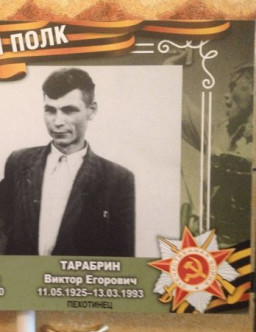 Тарабрин Алексей Иванович 1925 - 2022 Тарабрин Алексей Семенович 1924 - 1984 Тарабрин Алексей Федорович Пугачёвский район 1925 - 1985 Тарабрин Валентин Михайлович Тамбовская обл., Платоновский р-н, село Никольское 1925 - 1945 Тарабрин Василий Иванович 1918 - 1995 Тарабрин Василий Леонтьевич 1923 Тарабрин Виктор Дмитриевич 1925 - 1988 Тарабрин Виктор Егорович 1925 - 1993 Тарабрин Виктор Егорович 1925 - 1993 Тарабрин Георгий Иванович с.Катунское 1918 - 2000 Тарабрин Григорий Иванович 1913 - 1991 Тарабрин Даниил Романович 1901 - 1995 Тарабрин Дмитрий Ильич 1907 - 1982 Тарабрин Иван Андреевич Воронежская обл., Терновский р-н, с. Новотроевка 1925 - 1989 Тарабрин Иван Васильевич с.Яманка, Баксайский р-н 1900 - 1975 Тарабрин Иван Иванович с.Катунское 1911 - 1980 Тарабрин Иван Иванович 1915 - 2010 Тарабрин Иван Леонтьевич 1912 - 1984 Тарабрин Иван Николаевич 1924 - 1992 Тарабрин Иван Пантелеевич 1914 - 1943