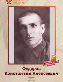 Федоров Кенсорин Александрович 1915 - 1980 Фёдоров Кенсорин Александрович 1915 - 1980 Федоров Кенсорин Александрович 1915 - 1980 Федоров Кир Иванович 1924 - 1943 Фёдоров Кирей Дмитриевич 1926 - 1996 Фёдоров Кирилл Никифорович Фёдоров Клавдий Алексеевич 1922 - 1973 Фёдоров Клавдий Алексеевич 1922 - 1973 Фёдоров Константин Александрович 1910 - 1945 Федоров Константин Александрович 1910 - 1967 Федоров Константин Алексеевич Казахстан 1901 - 1945 Фёдоров Константин Алексеевич Казахская ССР 1901 - 1945 Федоров Константин Васильевич с. Красный Труд, Гусевского р-на Ивановской обл 1906 - 1970 Фёдоров Константин Васильевич 1906 - 1970 Фёдоров Константин Елизарович 1924 - 2004 Федоров Константин Емельянович Якутская АССР, Мегино-Кангаласский район, с. Павловск 1921 Федоров Константин Иванович Город Калинин 1923 Федоров Константин Иванович 1926 - 1996 Фёдоров Константин Константинович Федоров Константин Кузьмич Калининская обл., Пушкино-Горский р-н 1906 - 1943