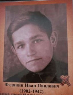 Федянин Абрам Давыдович Красноярский край Хакаский АО. Аскизский район с. Иудино 1920 Федянин Абрам Давыдович Красноярский край хакаская АО Азкизский район село Иудино 1920 Федянин Александр Егорович 1925 Федянин Александр Семёнович 1919 - 1991 Федянин Алексей Федосеевич 1911 - 1991 Федянин Валерий Дмитриевич 1911 - 1993 Федянин Василий Ефимович 1907 - 1982 Федянин Василий Константинович 1916 - 1990 Федянин Василий Степанович 1904 - 1955 Федянин Василий Степанович 1915 - 1991 Федянин Владимир Иванович г. Вятка 1901 - 1970 Федянин Георгий Иванович Ставропольский край, Петровский район, с. Гофицкое 1926 - 2007 Федянин Иван Васильевич 1921 - 2001 Федянин Иван Захарович 1906 - 1942 Федянин Иван Михайлович Село Большая Суворовка 1923 - 2015 Федянин Иван Михайлович 1923 - 2016 Федянин Иван Николаевич Федянин Иван Павлович 1902 - 1942 Федянин Иван Фёдорович 1907 - 1978 Федянин Иван Фёдорович 1907 - 1978
