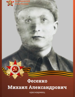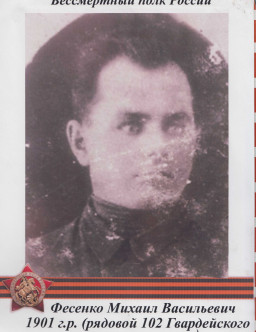 Фесенко Аркадий Павлович 1923 - 1993 Фесенко Василий Еремеевич 1919 - 1995 Фесенко Григорий Константинович 1906 - 1943 Фесенко Деомид Логвинович станица Сергиевская 1913 - 1945 Фесенко Дмитрий Давидович 1913 - 1984 Фесенко Евгений Георгиевич Фесенко Иван Арсентьевич 1922 - 2004 Фесенко Иван Арсентьевич х. Успенка 1922 - 2004 Фесенко Иван Дмитриевич город Камень-на-Оби Алтайского края 1912 - 1968 Фесенко Иван Егорович Село Красный Пахарь Волоконовского района 1923 - 1993 Фесенко Иван Мефодиевич 1900 - 1980 Фесенко Иван Федорович 1926 - 1983 Фесенко Исаак Дмитриевич 1916 - 1995 Фесенко Лидия Михайловна 1918 - 2005 Фесенко Михаил Александрович 1908 - 1944 Фесенко Михаил Алексеевич Краснодарский край Выселковский р-н ст. Березанская 1917 Фесенко Михаил Васильевич Харьковская обл., село Ревуче 1901 - 1943 Фесенко Михаил Ефимович 1919 - 2003 Фесенко Михаил Иванович 1921 - 1999 Фесенко Михаил Ильич 1923 - 2004