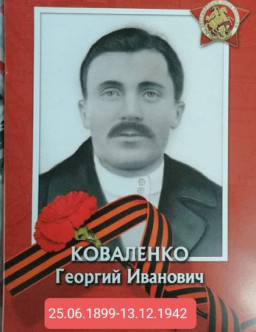 Коваленко Владимир Алексеевич 1913 - 2002 Коваленко Владимир Андреевич 1916 - 1945 Коваленко Владимир Васильевич 1927 - 1991 Коваленко Владимир Вячеславович с. Охотниково Сакского района, Крымской области 1976 - 2023 Коваленко Владимир Георгиевич Коваленко Владимир Гордеевич Киевская область, Таращанский район, село Лука 1901 - 1979 Коваленко Владимир Гордеевич 1926 - 2003 Коваленко Владимир Емельянович 1918 - 1998 Коваленко Владимир Иванович 1920 - 1999 Коваленко Владимир Михайлович с.Тангуй Тулунский р-н Иркутская область 1920 - 2008 Коваленко Гавриил Акимович 1899 - 1944 Коваленко Гавриил Кузьмич Апшеронск 1913 - 1942 Коваленко Гаврил Алексеевич коваленко георгий александрович 1913 - 1982 Коваленко Георгий Васильевич 1900 - 1984 Коваленко Георгий Ефимович 1906 - 1996 Коваленко Георгий Иванович 1899 - 1942 Коваленко Георгий Мефодиевич Украина, г. Смела 1924 Коваленко Георгий Пантелеевич Коваленко Георгий Сергеевич 1926 - 2011