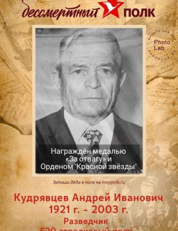 Кудрявцев Андрей Васильевич 1896 - 1942 Кудрявцев Андрей Иванович Псковская область 1907 Кудрявцев Андрей Иванович 1921 - 2003 Кудрявцев Андрей Игнатьевич 1911 - 1945 Кудрявцев Андрей Игнатьевич Деревня Новинка Заонежского района Карело-Финской ССР 1911 - 1945 Кудрявцев Андрей Михайлович 1910 Кудрявцев Андрей Петрович Кудрявцев Андрей Степанович 1904 - 1959 Кудрявцев Андрей Степанович Алтайский Край 1915 - 1994 Кудрявцев Ардальон Михайлович 1925 - 1963 Кудрявцев Аркадий Васильевич 1918 Кудрявцев Аркадий Егорович 1927 - 2000 Кудрявцев Аркадий Игнатьевич 1919 - 2012 Кудрявцев Аркадий Федорович 1919 - 1998 Кудрявцев Аркадий Федорович город Новая Ляля, Свердловской области 1919 - 1998 Кудрявцев Арсентий Ильич 1911 - 1973 Кудрявцев Арсентий Ильич 1911 - 1973 Кудрявцев Арсентий Николаевич 1923 - 2004 Кудрявцев Афанасий Васильевич д.Пантюшино, Шестаковского р-на, Конкинского с/с, Кировской области 1903 - 1987 Кудрявцев Афанасий Васильевич 1903 - 1986