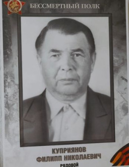 Куприянов Прокопий Куприянович 1907 - 1942 Куприянов Семён Михайлович 1903 - 1942 Куприянов Сергей Васильевич 1926 - 1996 Куприянов Сергей Васильевич г. Вичуга Ивановской области 1916 - 1942 Куприянов Сергей Григорьевич 1919 - 1993 Куприянов Сергей Дмитриевич город Пенза 1914 Куприянов Сергей Спиридонович 1924 - 1963 Куприянов Степан Александрович 1907 - 1967 Куприянов Тихон Тихонович 1924 - 2002 Куприянов Федор Андреевич Куприянов Федор Егорович 1914 - 1943 Куприянов Фёдор Иванович 1923 - 1944 Куприянов Фёдор Иванович Чувашская АССР, Аликовский район, д. Большие Токташи 1923 - 1944 Куприянов Фёдор Леонтьевич Свердловская область,Артинский р-он,д.Пристань 1926 - 2015 Куприянов Филипп Антонович 1907 - 1984 Куприянов Филипп Аристархович 1919 Куприянов Филипп Николаевич 1918 Куприянов Юрий Сергеевич 1926 - 2019 Куприянова Анастасия Борисовна 1915 - 1994 Куприянова Анастасия Борисовна Красноярск 1915 - 1994