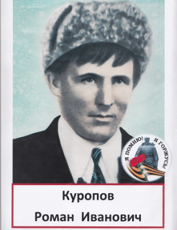 Куропаткин Сергей Васильевич 1916 - 1981 Куропаткин Степан Ефимович 1913 - 1942 Куропаткин Степан Федорович Куропаткин Степан Федорович 1912 - 1986 Куропаткин Яков Гаврилович 1902 - 1973 Куропаткина Мария Ивановна дер. Первая Покровка Бирского района Башкирской АССР 1919 - 2010 Куропатко Иван Андреевич 1913 - 1998 Куропатков Борис Васильевич 1927 - 1976 Куропатков Николай Фёдорович 1915 - 1945 Куропато Иван Петрович 1913 - 1990 Куропатов Иван Петрович 1913 - 1990 Куропатов Иван Петрович 1910 - 1944 Куропатов Федор Петрович 1917 - 1959 Куроплинко Капитон Михайлович 1903 - 1993 Куропов Михаил Васильевич Рязанская область, Ряжский р-н, дер. Красный гудок 1918 - 1944 Куропов Николай Данилович 1926 - 1944 Куропов Роман Иванович Село Кочки Купинского района Новосибирской области. 1909 Куроптев Борис Васильевич 1914 - 1985 Куроптев Василий Николаевич 1912 - 2001 Куроптев Василий Павлович 1921 - 2012