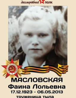Маслова (Жоголева) Любовь Петровна 1924 - 1981 Маслова (Кирюхина) Наталия Ивановна Ульяновская область тереньгульский район село Большая Борла 1923 - 2023 Маслова (Кирюхина) Наталья Ивановна Ульяновская область Тереньгульский район село Большая борла 1923 - 2023 Маслова (Пузырева) Мария Платоновна с. Большие-Луки 1921 - 1998 Маслова (Тарасенко) Лидия Петровна 1921 - 1988 Маслова-Кунева Александра Яковлевна 1922 - 1980 Масловская Варвара Романовна 1920 - 2004 Масловская Вера Евгеньевна Масловская Вера Евгеньевна Масловская Гунефа Антоновна 1908 - 1974 Масловская Татьяна Александровна 1922 - 1994 Масловская Фаина Лольевна 1923 - 2013 Масловская Фаина Лольевна 1923 - 2013 Масловский Александр Иванович 1926 - 1990 Масловский Александр Маркович 1912 - 1944 Масловский Василий Егорович 1903 - 1941 Масловский Василий Егорович 1903 - 1941 Масловский Василий Миронович г Гомель Республика Беларусь 1918 - 2006 Масловский Василий Степанович 1927 Масловский Вячеслав Матвеевич