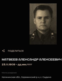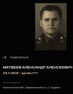 Матвеев Александр Александрович Красноярский край, Каратузский р-н, с. Сагайское 1916 - 1968 Матвеев Александр Алексеевич 1907 - 1986 Матвеев Александр Алексеевич 1909 Матвеев Александр Алексеевич 1925 - 2006 Матвеев Александр Алексеевич Матвеев Александр Алексеевич 1924 - 1993 Матвеев Александр Алексеевич 1909 Матвеев Александр Андреевич 1905 - 1957 Матвеев Александр Андреевич Башкирская АССР, Белебеевский р-н, с. Знаменское 1912 - 1988 Матвеев Александр Антонович Матвеев Александр Васильевич с. Галкинское Камышловского района Свердловской области 1923 - 1995 Матвеев Александр Васильевич Калужская область 1906 - 1973 Матвеев Александр Васильевич 1926 - 1984 Матвеев Александр Васильевич Сибирь 1923 - 1974 Матвеев Александр Васильевич 1924 Матвеев Александр Владимирович 1915 - 1972 Матвеев Александр Гаврилович 1910 - 1980 Матвеев Александр Григорьевич 1903 - 1978 Матвеев Александр Дмитриевич 1926 Матвеев Александр Зиновьевич 1926 - 2000