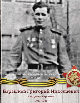 Барашков Анатолий Михайлович Барашков Анисим Евсеевич 1908 - 1945 Барашков Афанасий Васильевич Татарская АССР, Больше-Тарханский р-н с.Урюм 1909 Барашков Борис Павлович 1916 Барашков Валентин Николаевич 1922 - 1995 Барашков Василий Александрович Свердловская область Слободо-Туринский район деревня Коржавина 1923 - 1971 Барашков Василий Афанасьевич 1926 - 1995 Барашков Василий Лазаревич Барашков Василий Николаевич 1902 - 1977 Барашков Василий Павлович п.Поречье, Ярославской обл. 1904 - 1951 Барашков Вениамин Николаевич 1922 Барашков Виталий Алексеевич 1922 Барашков Гордей Силеверстович 1896 - 1952 Барашков Григорий Николаевич 1917 - 1945 Барашков Григорий Федорович 1920 - 2010 Барашков Гурьян Николаевич д. Ваничи, Советский район, Кировская область 1924 - 2013 Барашков Гурьян Николаевич 1924 - 2013 Барашков Иван Александрович 1907 - 1965 Барашков Иван Егорович 1917 - 1990 Барашков Илья Алексеевич 1913 - 1985
